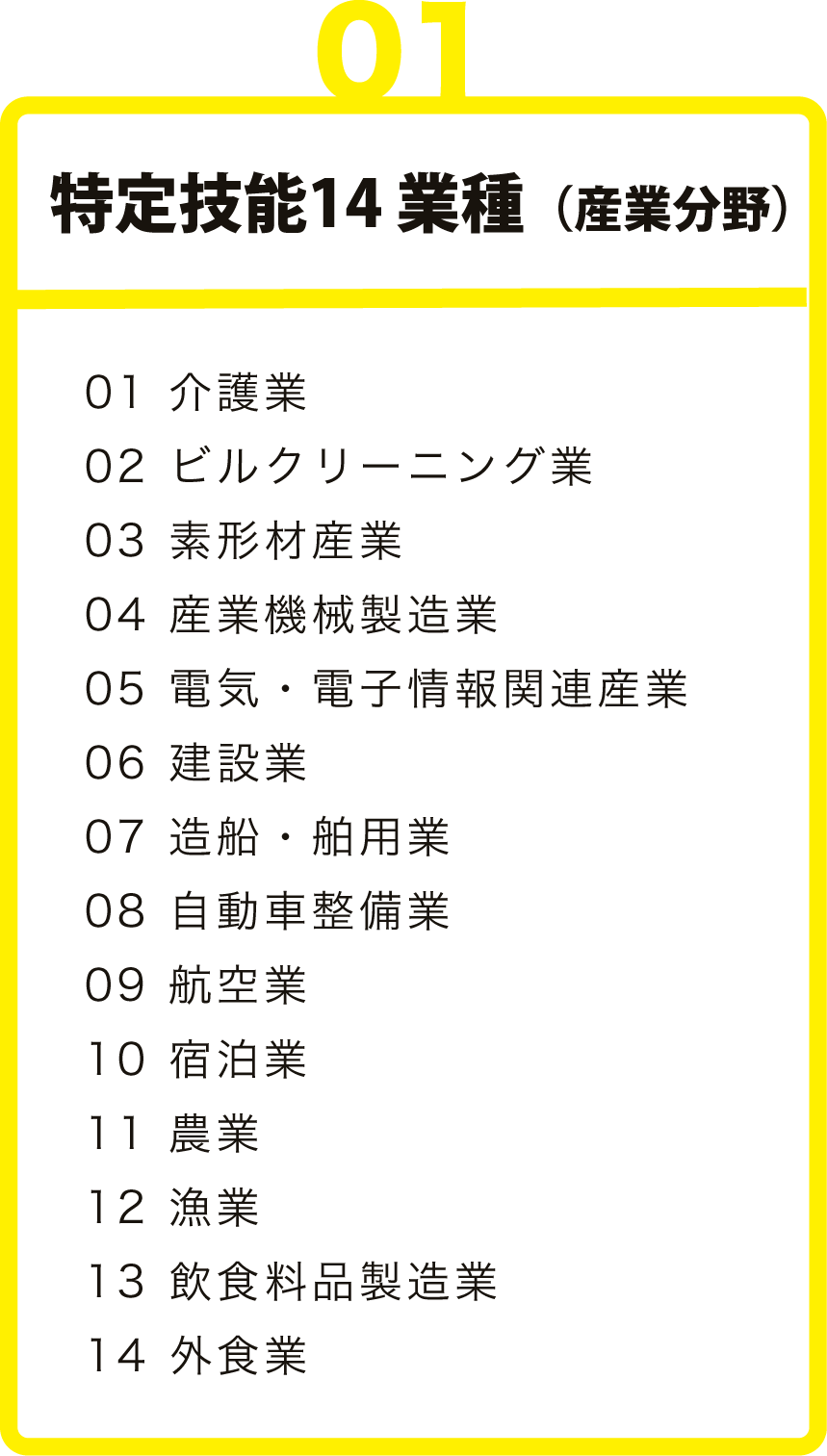 弊社 がご紹介・支援する外国人業種
